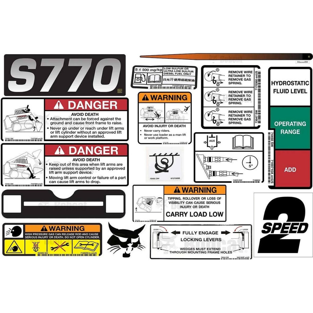 Описание:Комплект наклеек для внутреннего и внешнего перевода модели S770 Bobcat, 6990491